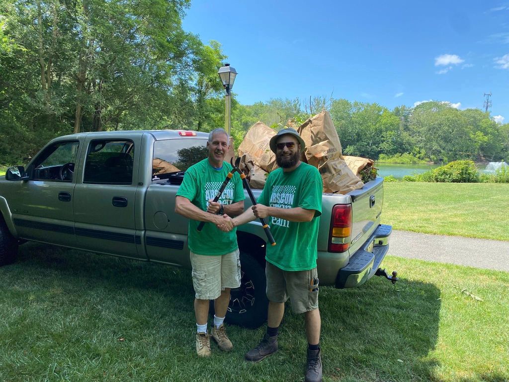 The Absecon Green Team has initiated an effort to remove invasive plants from Heritage park. Day one was June 25th 2023 – and without wanting to sound immodest, we killed it today! Absolutely killed it! We had a super turnout of dedicated rock stars. It was hot and humid, but this deterred no one. In fact, if anything, the group seemed motivated by the humidity!